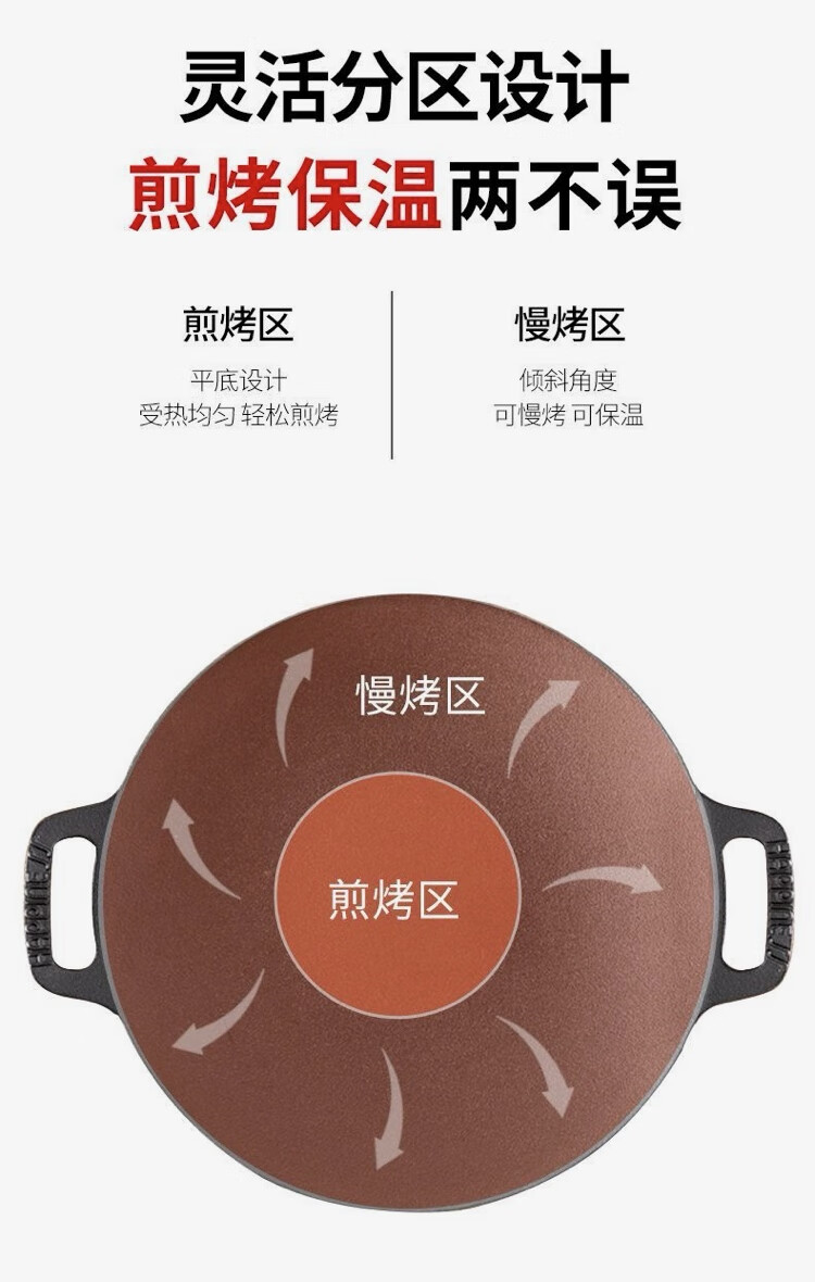 铸铁烤炉铸铁烤肉盘家用煮茶全套新款室内户外多功能烤炉套装 26cm烤炉/烤网/木托+38cm烤盘