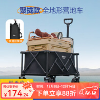 原始人露营推车户外营地拖车旅行可折叠手推野餐野营手拉车遛娃小拉车 208L 【曜石黑】升级加大后开款