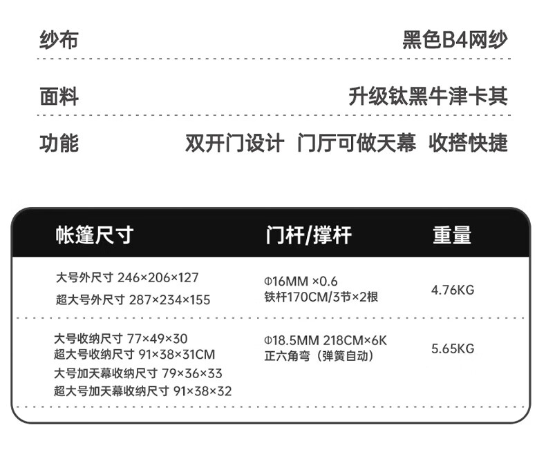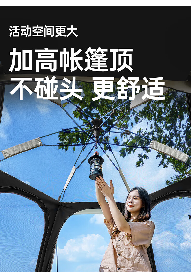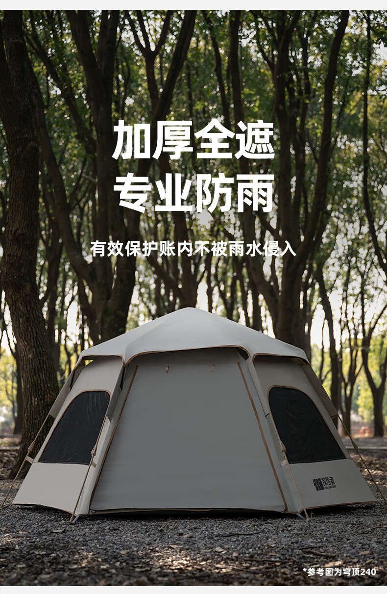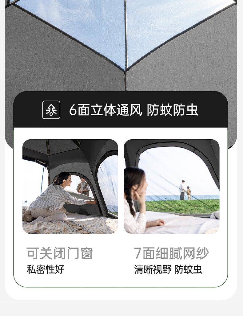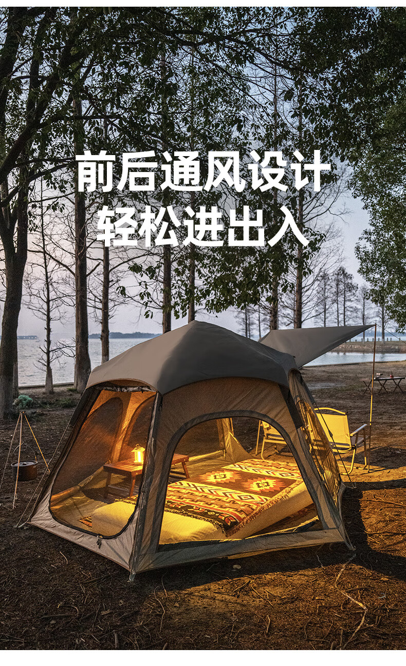 这款帐篷质量超棒,轻便易携带!搭建简单快捷,空间宽敞透气,防风防雨性能优异。细节设计贴心,防蚊网和储物袋超实用,露营体验满分推荐!