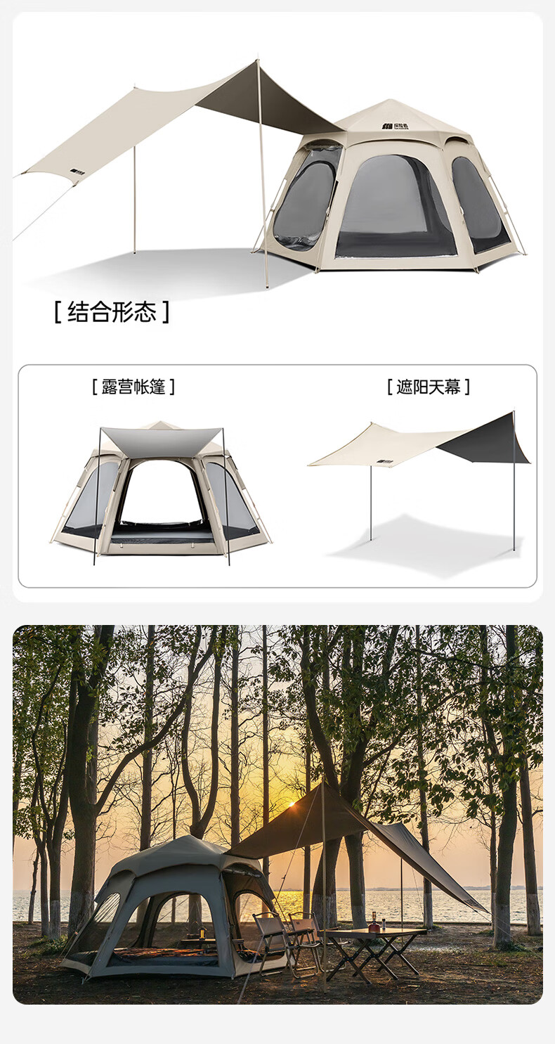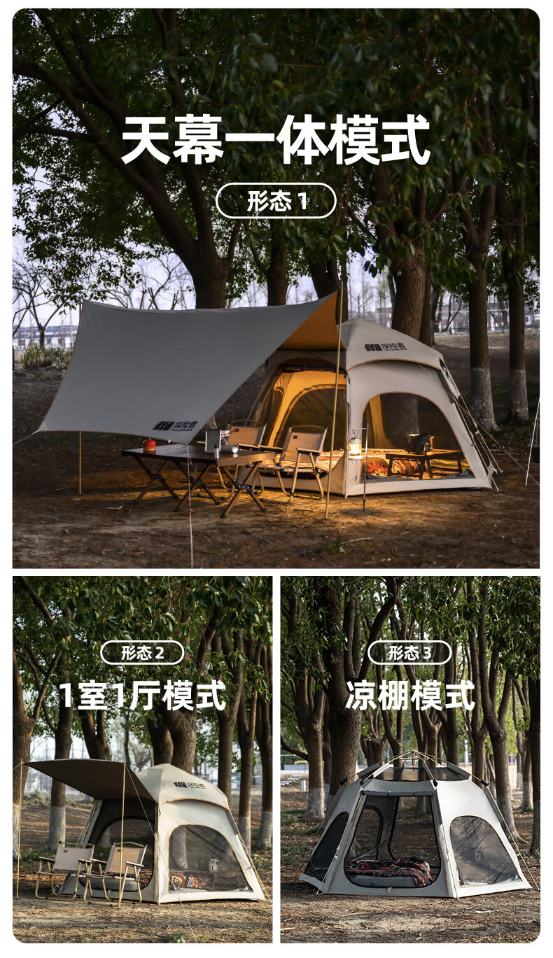 探险者全自动帐篷户外野营过夜便携式折叠天幕二合一露营全套装备 【穹顶270】延展天幕版+防潮垫