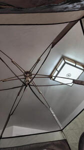 收到后直接打开看了,很满意,六角的设计,很稳固,空间也很大,并且黑胶的遮光效果也很不错,客服的服务态度也很好,不论什么时候联系都很热情。