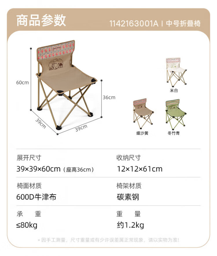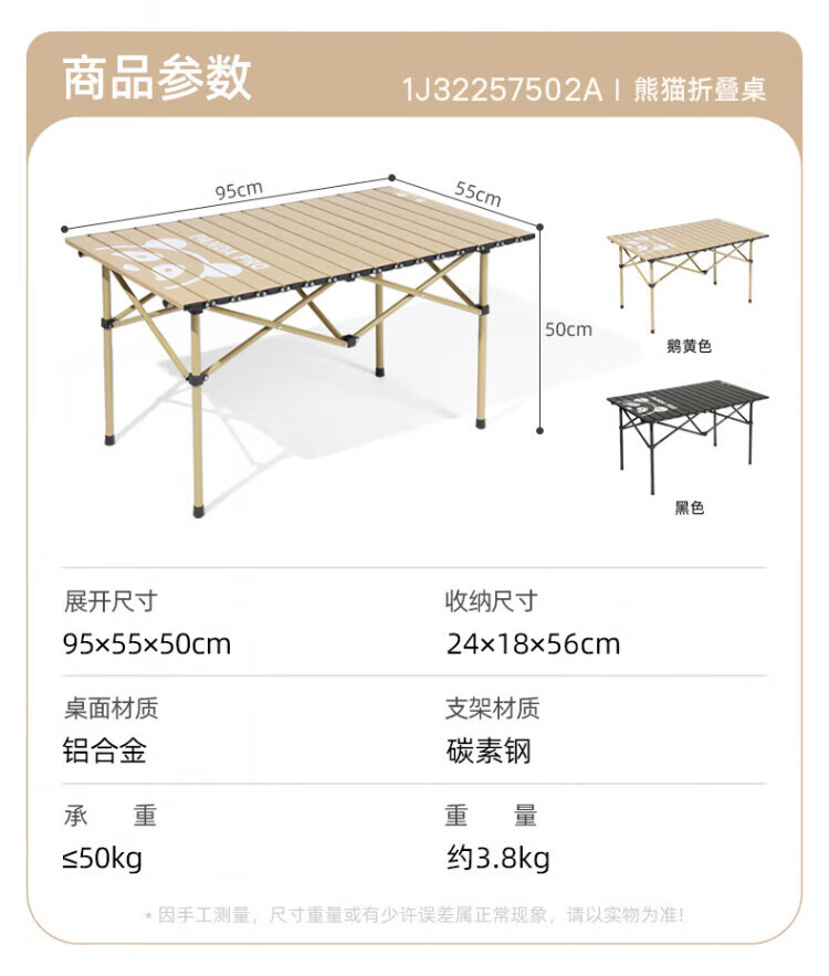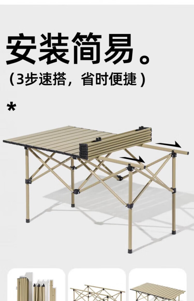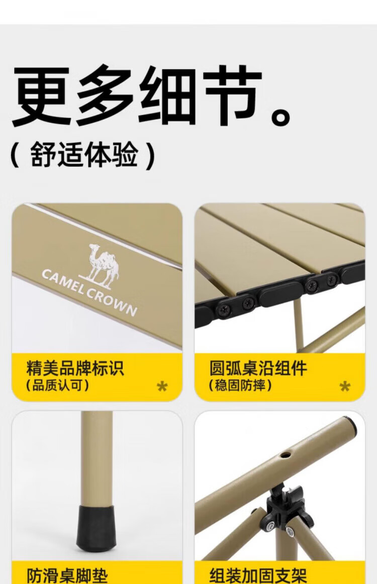骆驼(CAMEL)户外折叠桌便携式露营桌椅套装碳钢野餐桌子蛋卷桌夜市摆摊 桌椅3件套 赠收纳袋 3009 鹅黄/米白