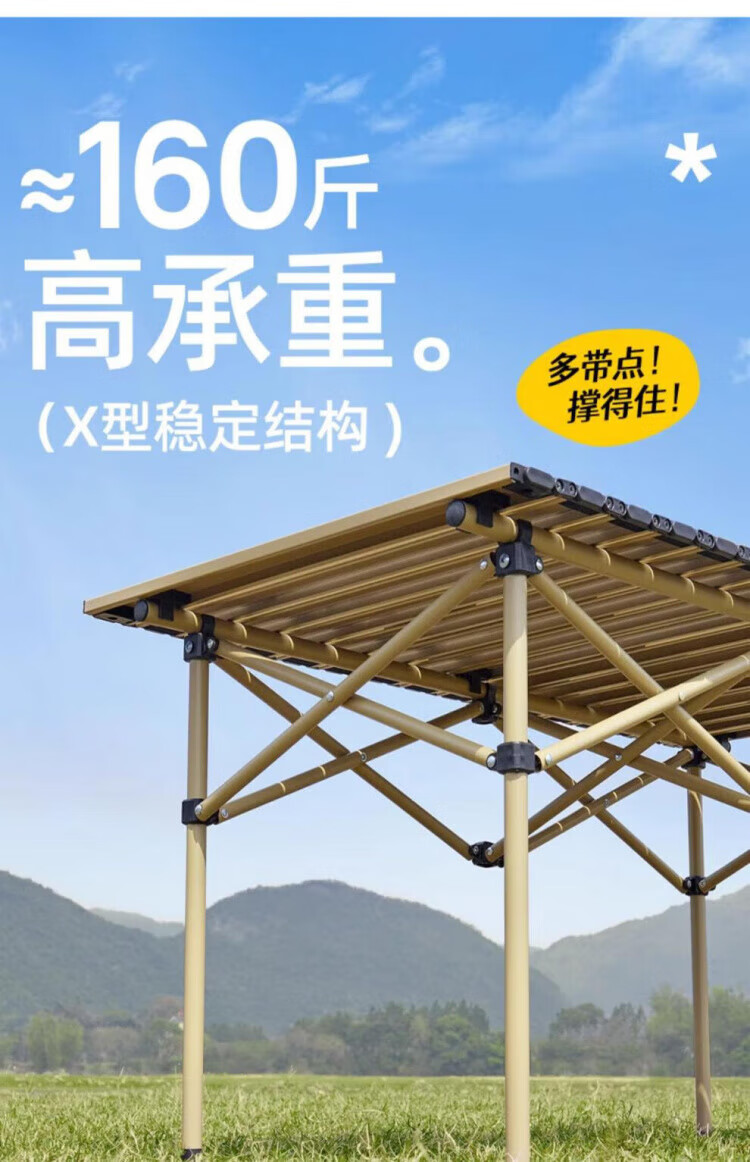 Guide Series户外铝合金折叠桌露营桌便携升降沙滩烧烤桌加宽桌自驾游车载桌 新 加宽金属 木纹黑色