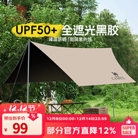 骆驼(CAMEL) 户外天幕帐篷露营野餐加厚防晒便携遮阳棚野炊公园野营防小雨棚 9㎡ 流沙金 黑胶蝶形 136BJ54006