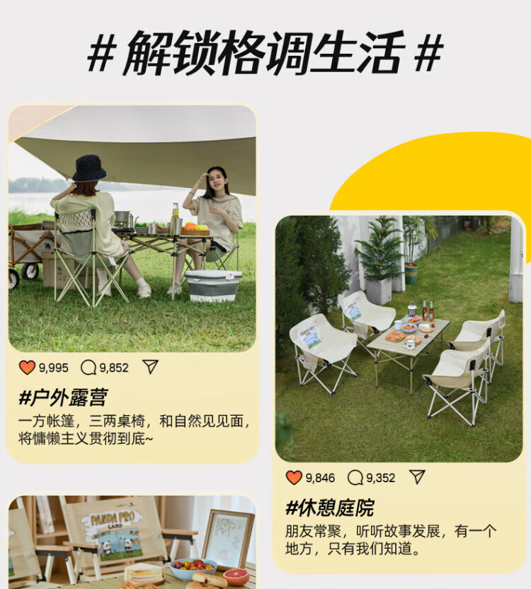 原始人户外折叠椅露营椅子躺椅便携折叠月亮椅小凳子折叠凳钓鱼凳 露营全套【推车+22㎡天幕+一桌四椅】