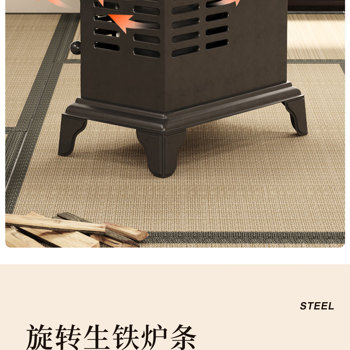 古慕妮家用煤炭取暖炉子烤火炉柴煤两用炉室内炉节能炉气化柴碳炉 无气化功能前开经典小胆
