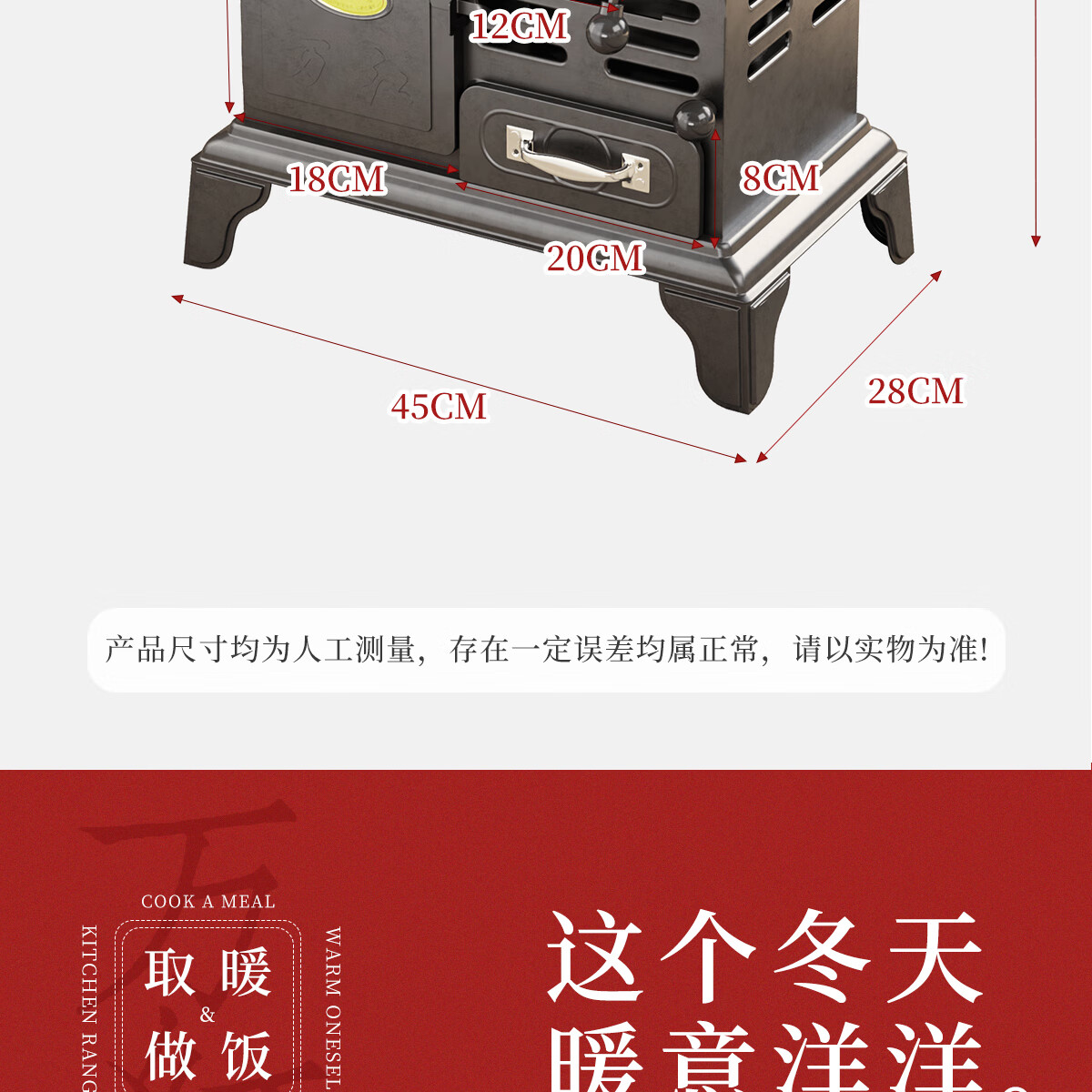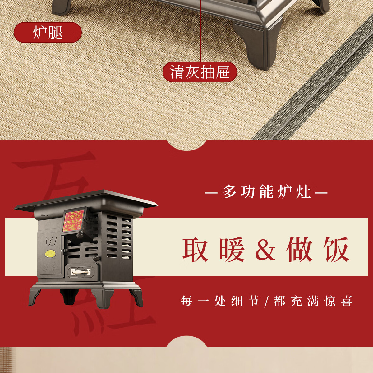 古慕妮铸铁柴煤两用炉子柴火取暖炉家用冬天室内采暖新型农村烤火 门店款小号铸铁炉礼包