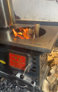 收到就烧了试了下火力和水箱,火力可以看图片,确实火力特别旺,添柴口很方便做着添柴,冬天室内可以烧煤,放在室外早上烧个水,洗脸很方便,水箱是不锈钢的,质量很好