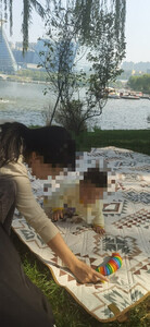 不得不说 这款垫子的颜值太高了,放在户外随便一拍真的是很出片 正面防水加棉,好清洗擦拭,背面是防潮铝,不沾土抖抖可以了,出门携带方便