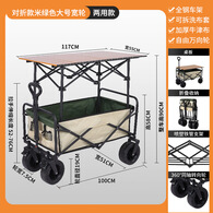 户外摆摊小推车 可折叠夜市集市地摊小车户外露营车拉货多功能小 八寸宽轮(米绿)特高折叠桌子