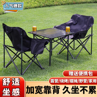 Aoran月亮椅户外折叠椅超轻便携式露营高背椅子钓鱼凳野餐躺椅沙滩椅 套餐一:90cm蛋卷桌+超厚棉椅*2 92cm高靠背+加粗钢管【高承重】
