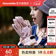 Naturehike挪客发热德绒触屏防滑运动手套男女户外露营跑步骑行登山轻薄手套 粉灰 XL