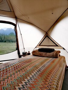 这是我买的第三件珊瑚绒睡袋,两件棕色,一件米白,送朋友一件,朋友非常喜欢,适合南方天气露营,盖着暖暖的很舒服,帐篷也是牧高笛的185指挥官,牧高笛品牌值得信赖!