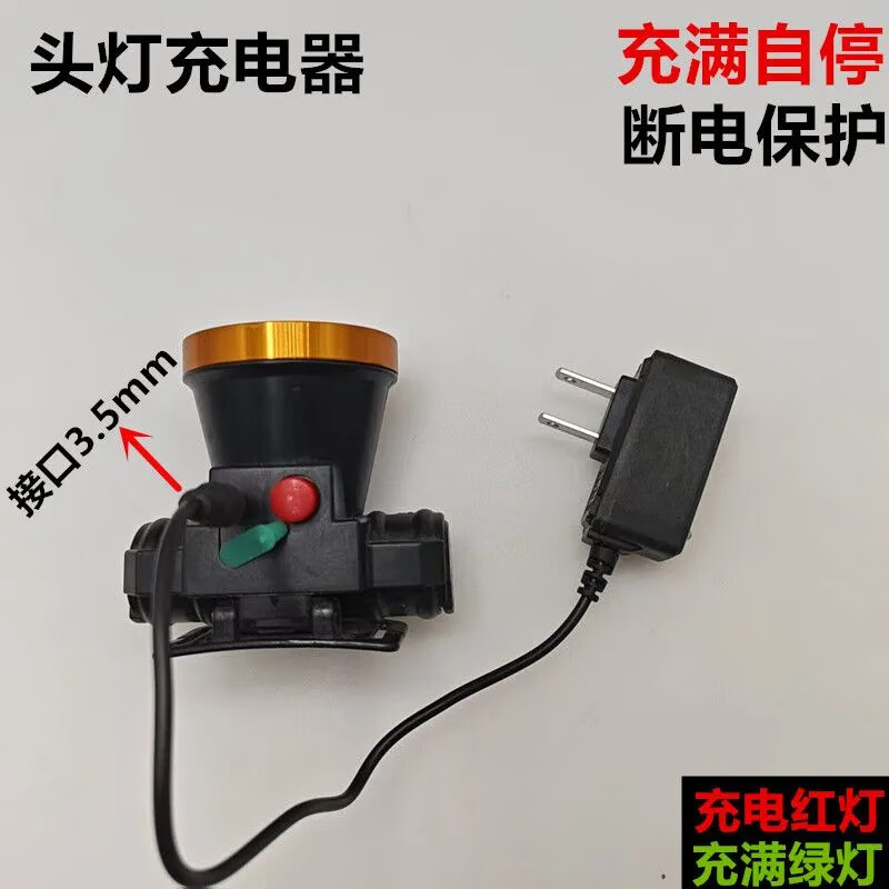 户外头灯单细孔3.5mm通用锂电池充电器适用于强光小头灯 3.5mm小圆孔充电器