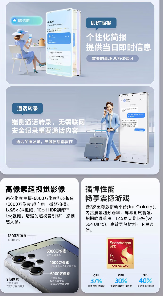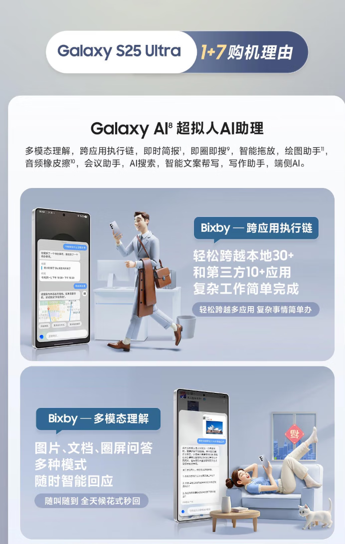 三星(SAMSUNG)Galaxy S25 Ultra 超拟人AI助理 2亿像素主摄智能手机 钛银蓝 16G+1T 正品保障权益已启用品质无忧