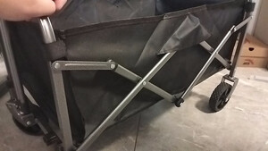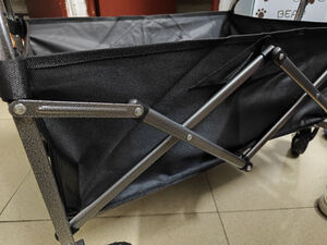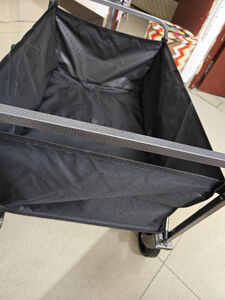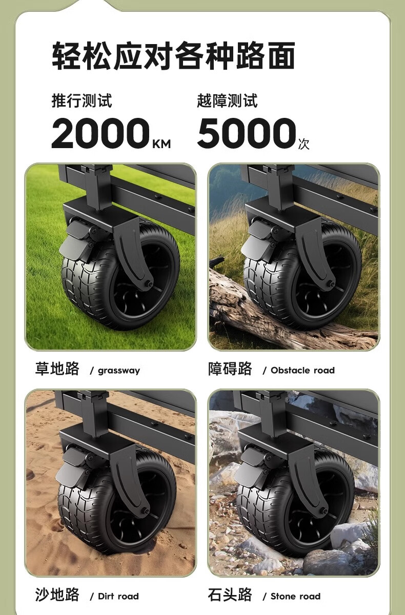 钢架质量特别坚硬厚实,轮子不大但也是很灵活,容量挺大,一家人出去野餐可以装很多东西,小孩也能坐上面,不怕侧翻,一拿回来小孩特别喜欢,一直当玩具推,喜欢的亲们可以入手,性价比超高!