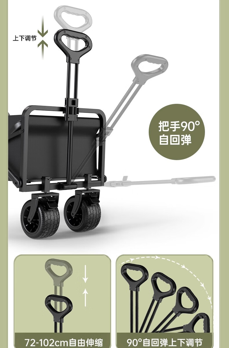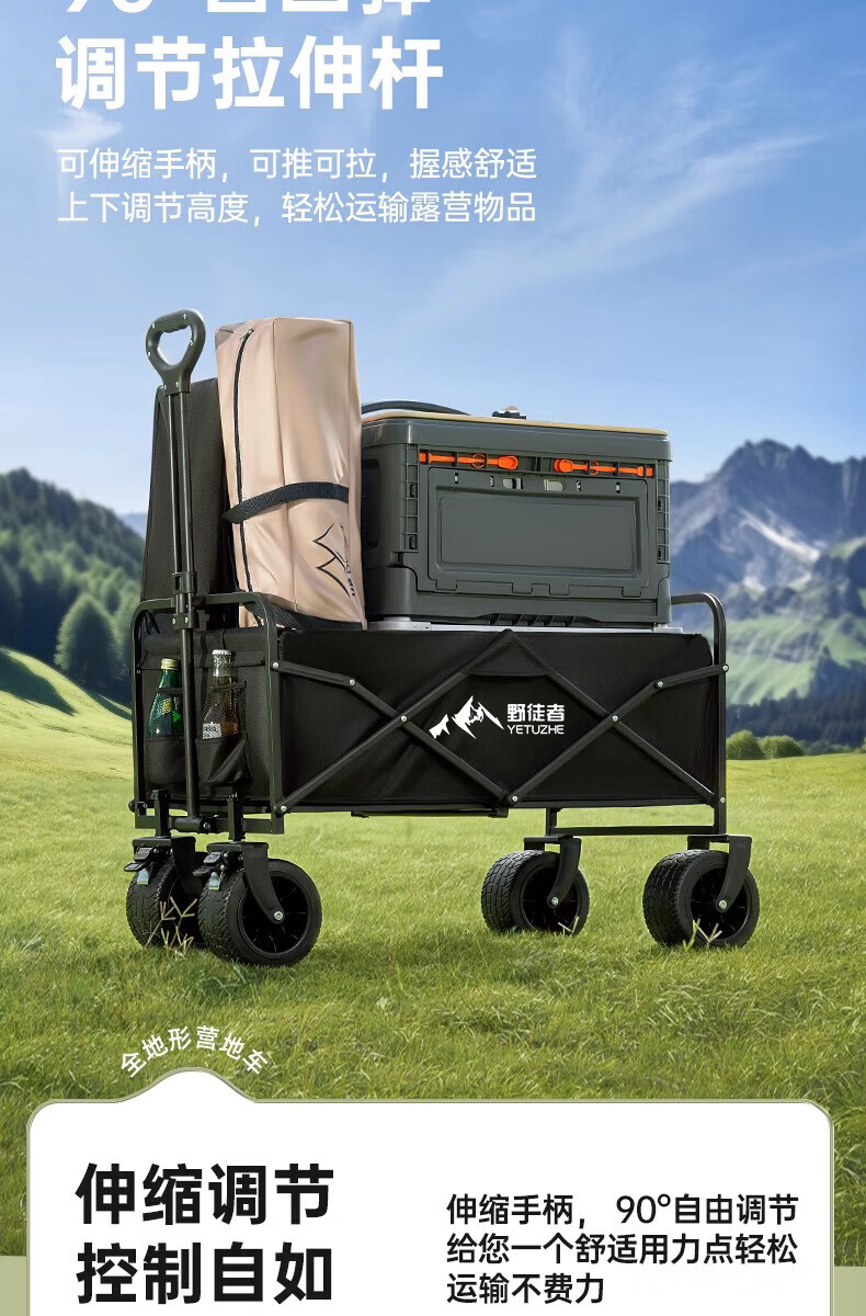 露营幸福感全靠它!这辆小车太能装了 自从入了这款露营车,每次出门再也不用手忙脚乱扛装备!车身看着轻巧,实则超能装,帐篷、折叠桌椅、食材箱、宝宝的玩具和野餐垫全塞进去还能留空,拉杆握着顺手,推起来特别顺滑,哪怕是草地、小石子路也不卡顿,比之前手提肩扛轻松10倍。 最惊喜的是它收纳超方便,不用费劲拆卸,轻轻一折就能变小,塞进汽车后备箱角落完全不占地。布料厚实耐磨,上次不小心蹭到树枝也没勾破,承重也靠谱,偶尔让娃坐在里面推着走也稳稳的。 现在不管是去公园露营、海边野餐,还是逛超市买东西,都离不开它。不仅解放双手,还能装下满满一堆装备,真心建议爱出门的家庭都备上,幸福感直接拉满!