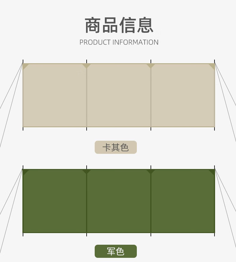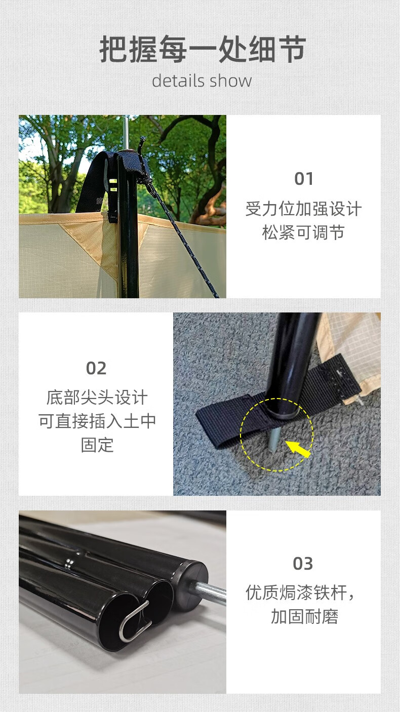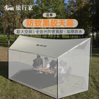 旅行家云亭防蚊黑胶天幕户外露营遮阳防晒防雨蚊帐帐篷野餐便携遮阳棚 卡其色(带蚊帐)