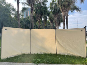 物流很快,打开试用了一下,收纳起来很小,很方便带出去,挡风效果很好,高度非常适合,质量很好,颜值高,面料比较厚实,做工精细。后期再追评!