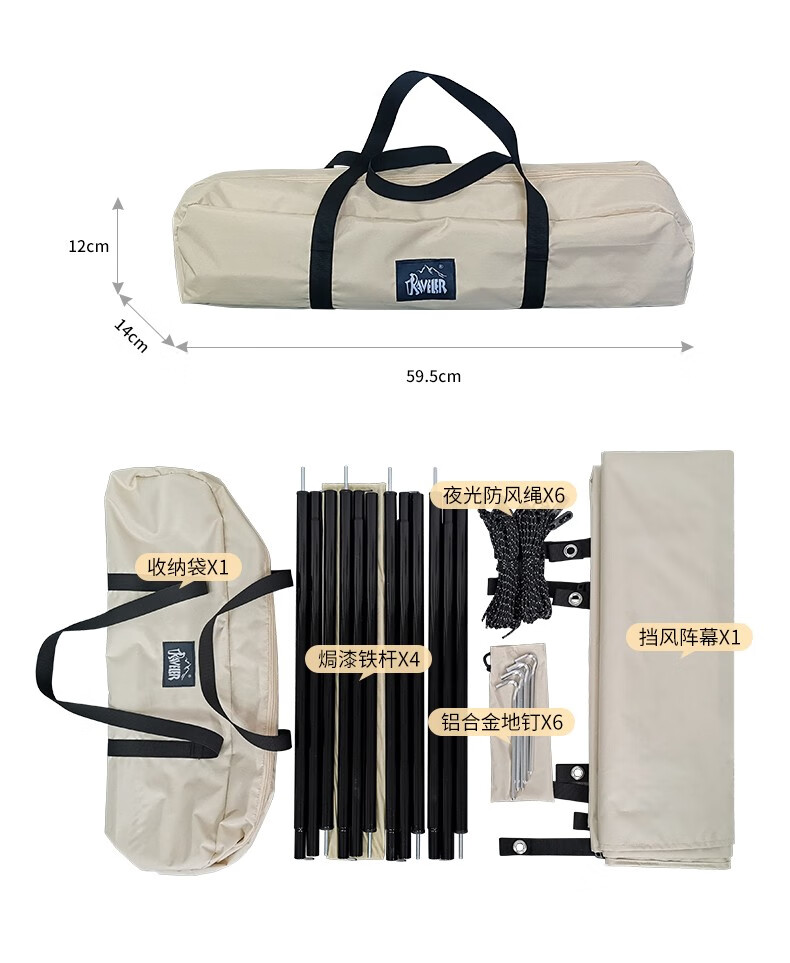 CAMPINGMOON柯曼户外挡风阵幕焚火烧烤配件野营阻燃帆布屏风野餐风幕B-660 【B-660】小号阵幕
