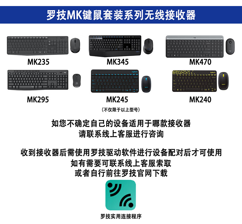 罗技USB无线键鼠接收器 MK295/MK275/MK270/MK470/MK345/MK245/MK240/MK220/MK315键盘鼠标套装适配器 MK275键鼠套装无线接收器