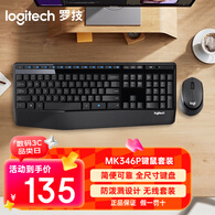 罗技(Logitech)MK346P(同MK345外观) 无线键鼠套装 办公商用键盘鼠标套装 全尺寸键盘104键 数字小键盘 便携黑色