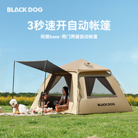 black dog黑狗两门两窗帐篷户外便携速开帐篷防晒露营防雨公园帐 闲居base系列|钛黑胶款拓展天幕|卡其色