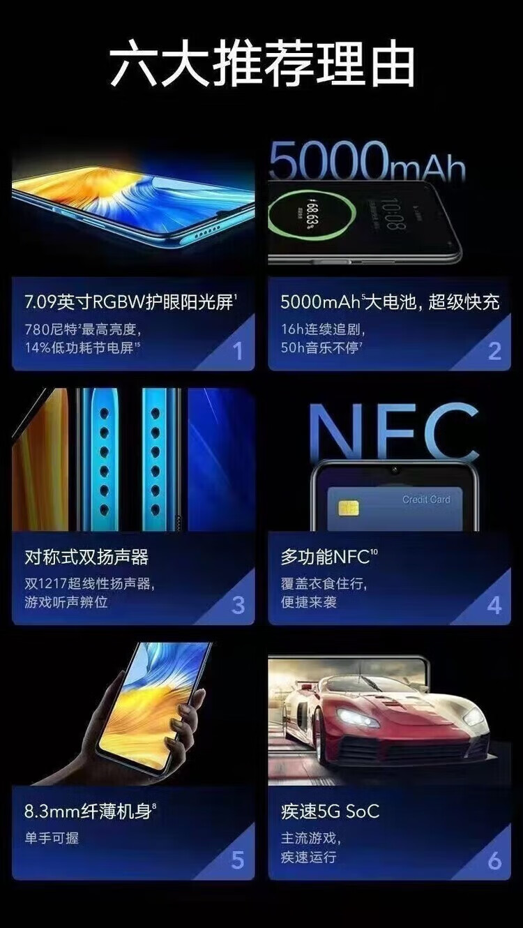 荣耀X10Max5G全网通双卡双待超大屏幕NFC超快充智能手机 竞速蓝 6GB+128GB 全网通5G
