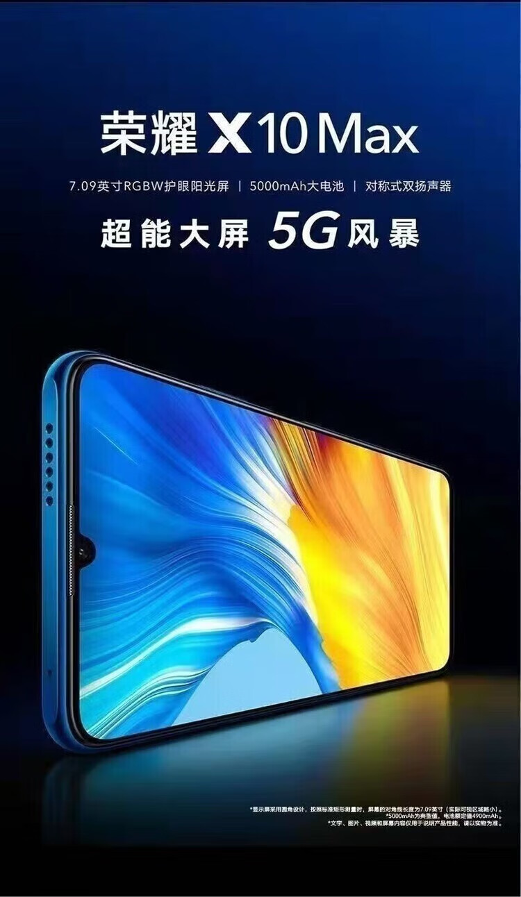 荣耀X10MAX 全网通双卡双待超大屏5G全网通学生备用智能手机 竞速蓝 8GB+128GB