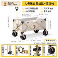憨尼熊露营车露营推车户外营地拖车超大可折叠手推野餐野营手拉车小拉车 【加强款】大号米白+越野轮