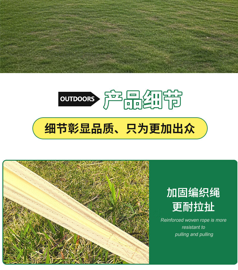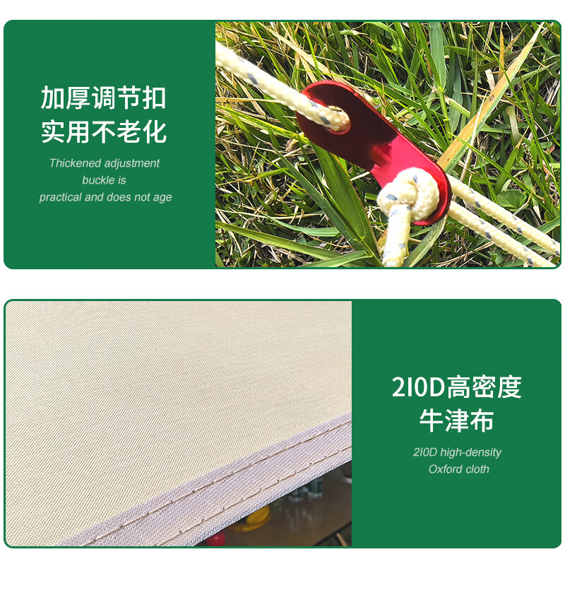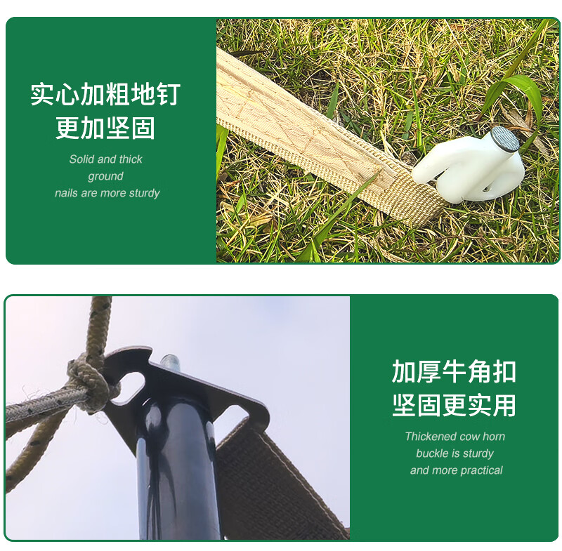 建大搭建,绳子粗,安全系数高,每次路过别人的天幕都担心看不见绳子被拌摔跤,这个完全需担心