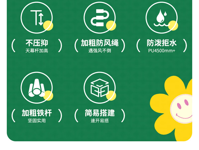 这个天幕非常方便好用。分神少操作起来更方便挡,太阳,挡雨都可以。看起来很漂亮,大家可以下手。棒棒的。