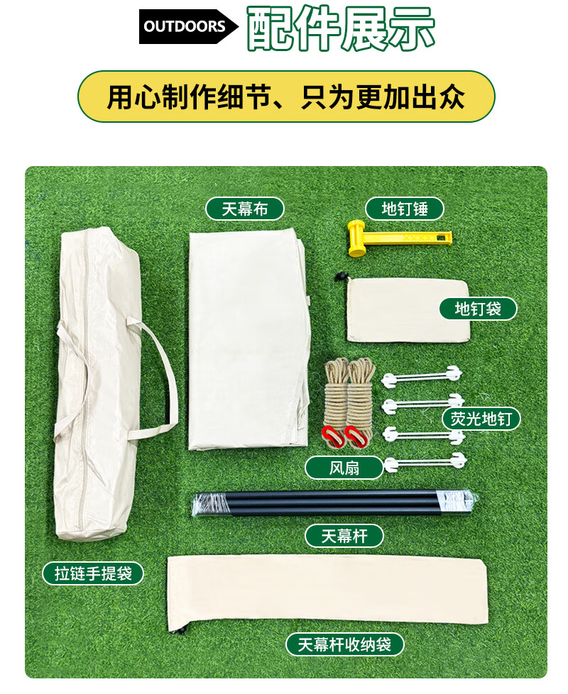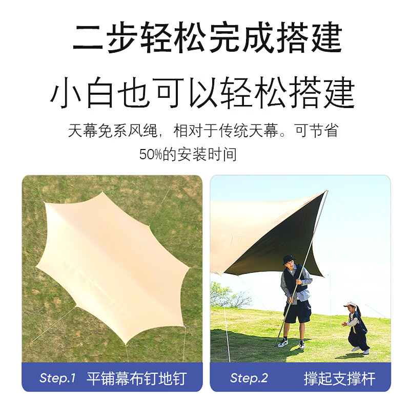 天幕很好搭建,零基础的我都能一个人搞定,以前搭帐篷还得靠老公,现在我自己就能搭了,带孩子出去玩很方便,出去玩那天太阳很大,这款天幕防晒效果很好,主要是搭建很省事,适合我这种懒人。