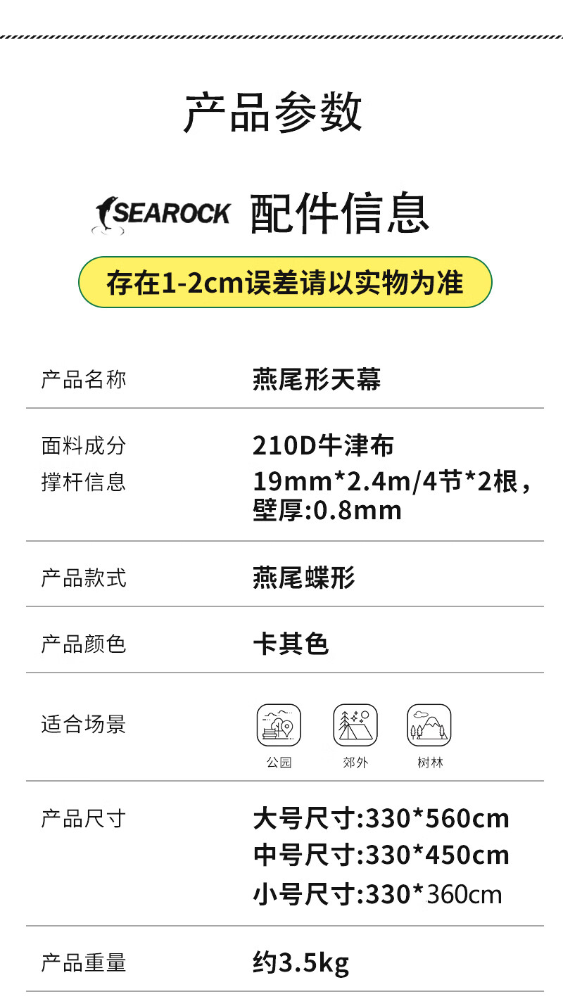 SEAROCK新燕尾天幕户外露营懒人免安装加厚黑胶防晒遮阳防雨天幕 3.3*4.5米银胶17平【6-8人】