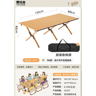 野徒者露营桌蛋卷桌户外折叠桌子椅便携式野餐桌椅露营装备野炊野营套装 原木色【150-60】6/8人款 加固承重
