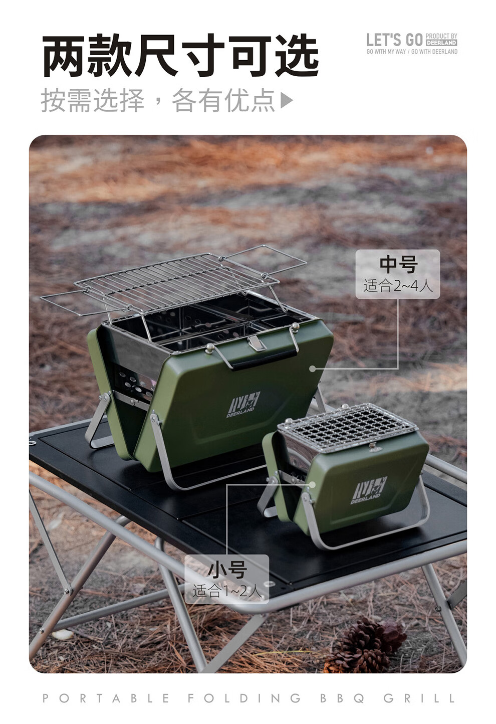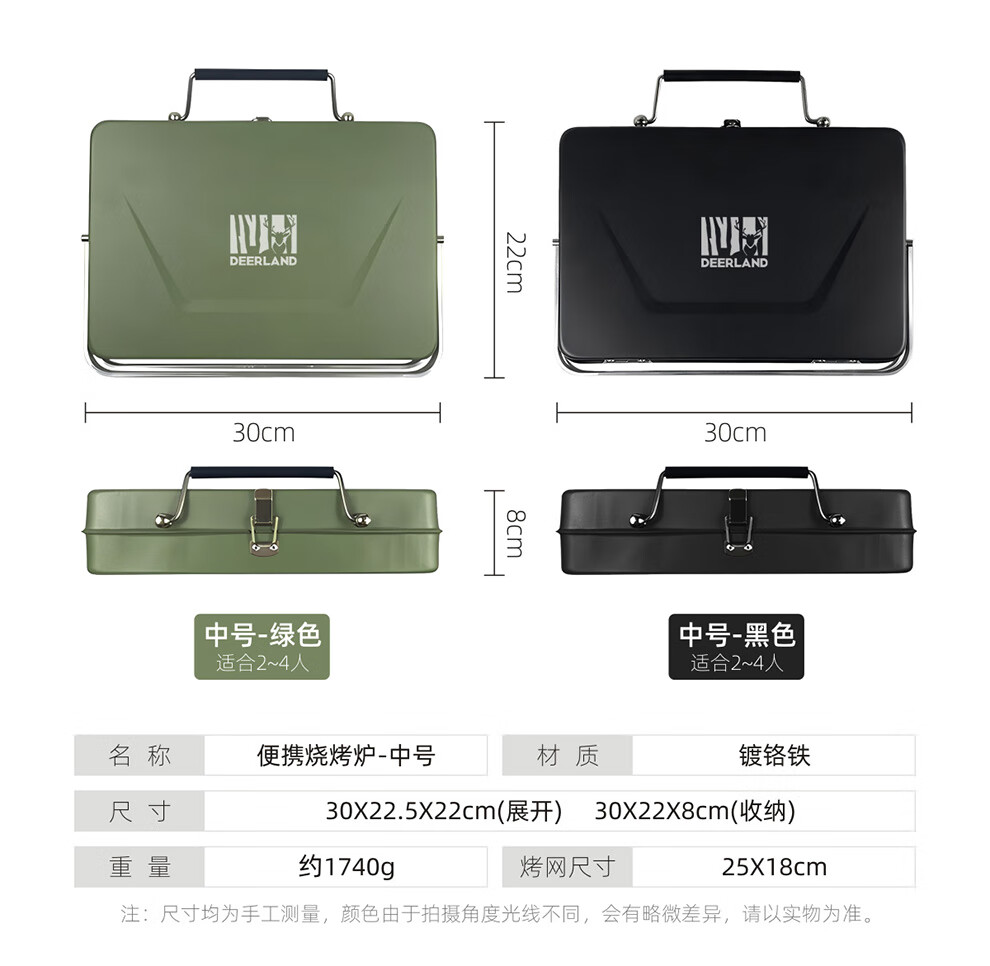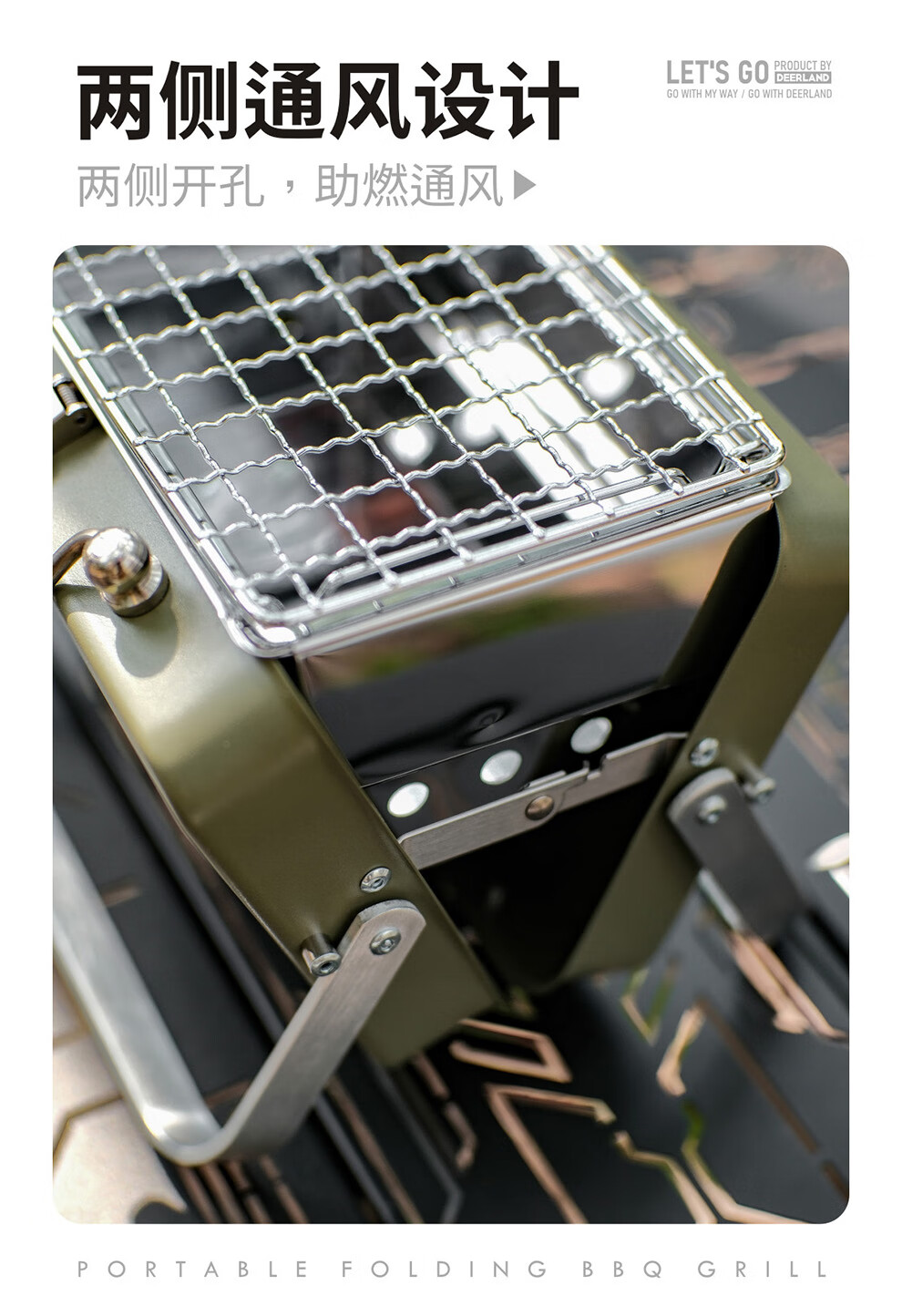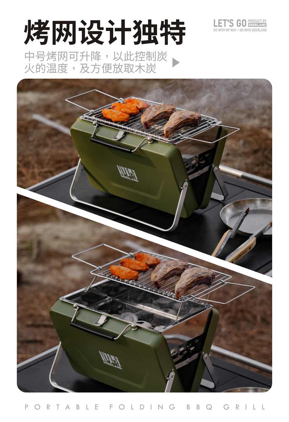 DEER LAND户外便携折叠烧烤炉家用迷你烧烤架小型 绿色中号烤炉