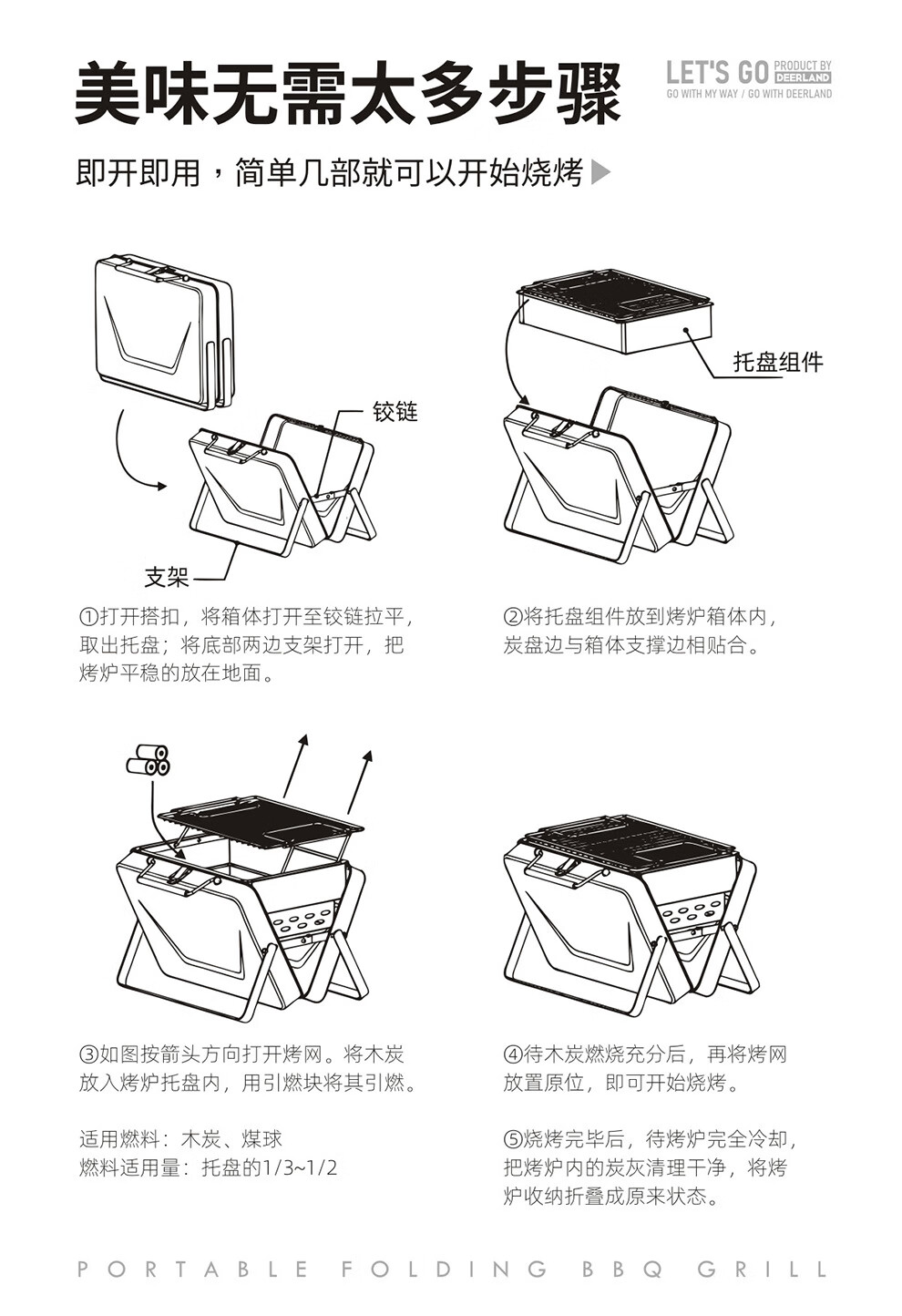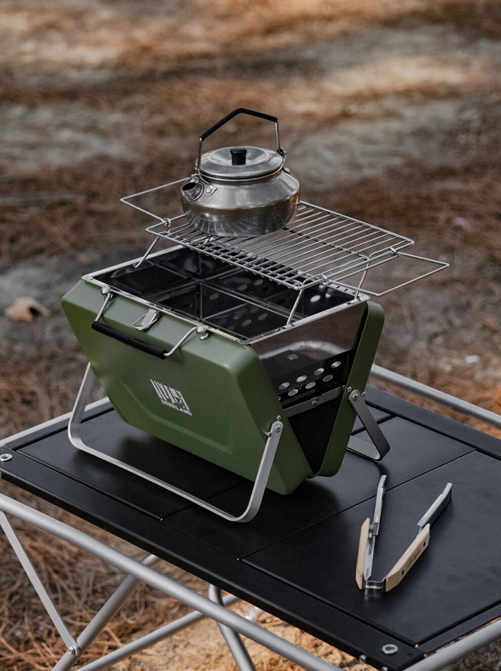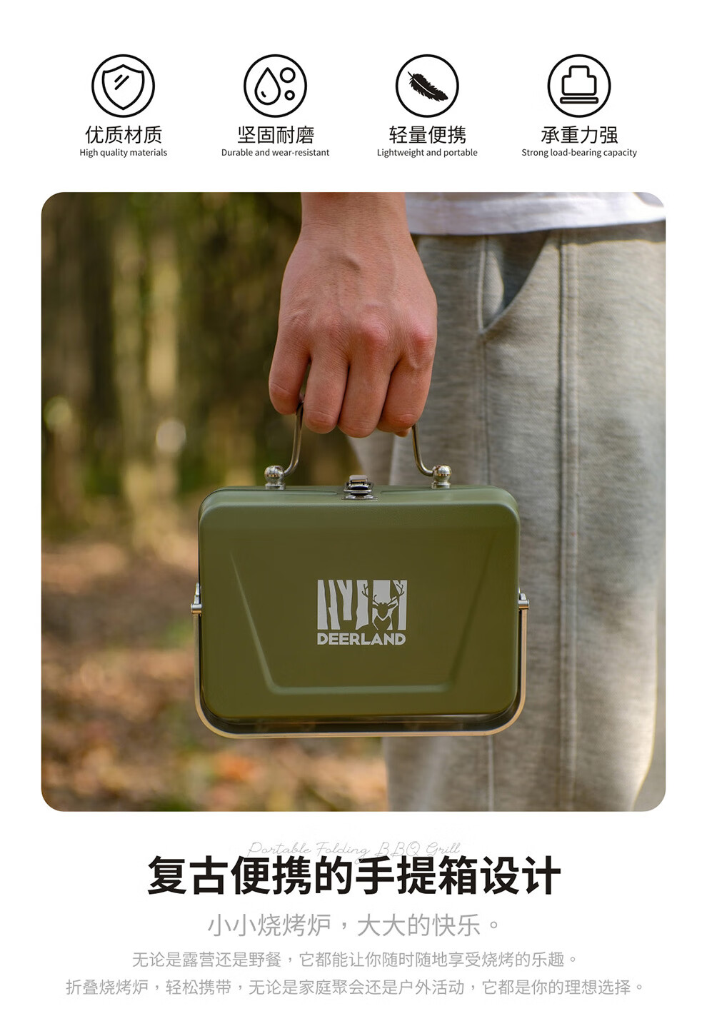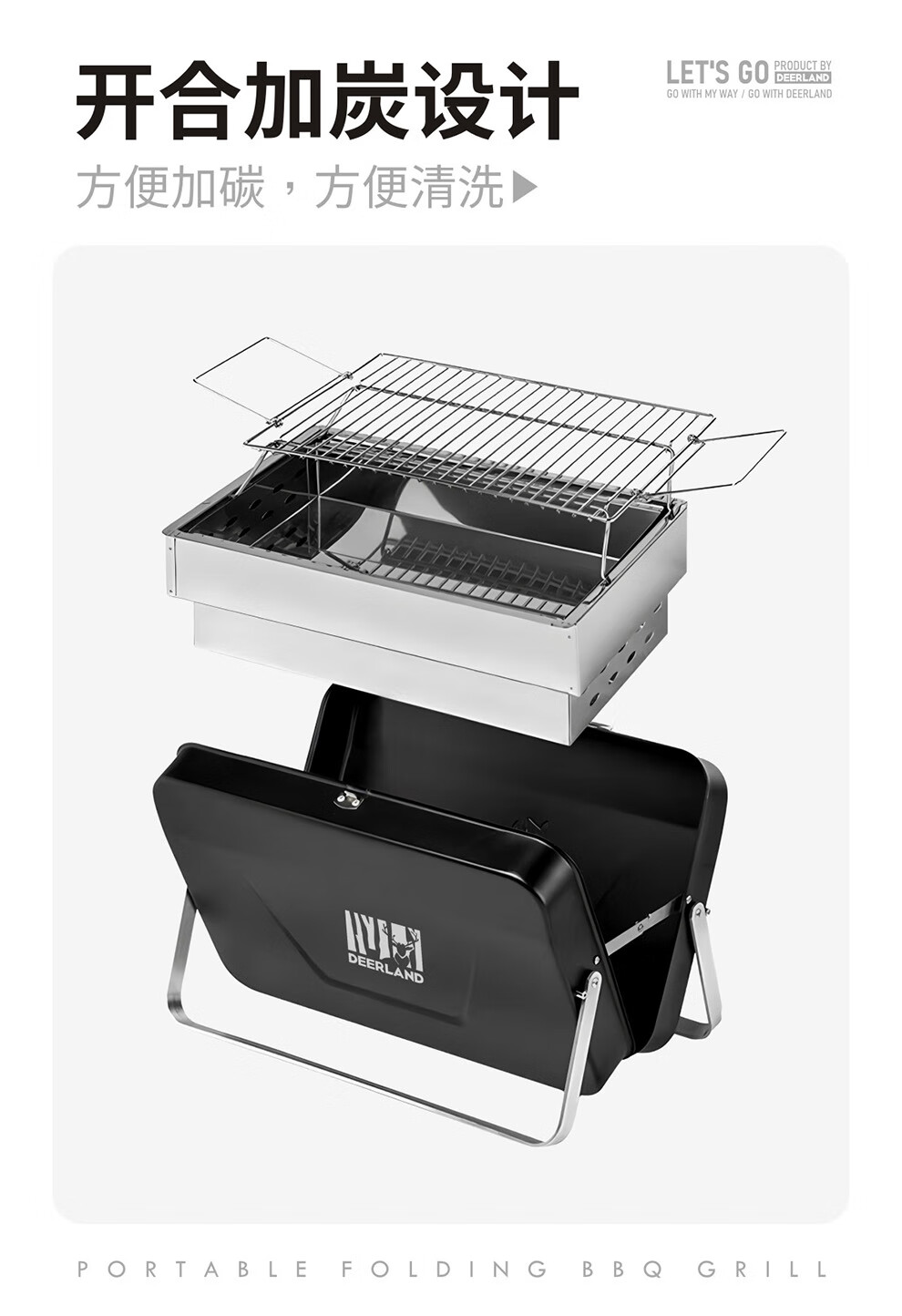 DEER LAND户外便携折叠烧烤炉家用迷你烧烤架小型 绿色中号烤炉