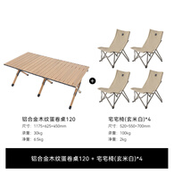 黑鹿(BLACKDEER)木纹铝合金蛋卷桌 户外露营折叠桌椅 便携式露营烧烤野餐折叠桌子 木纹蛋卷桌120款+宅宅椅玄米白*4