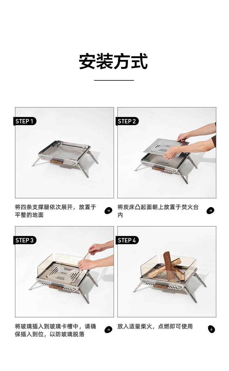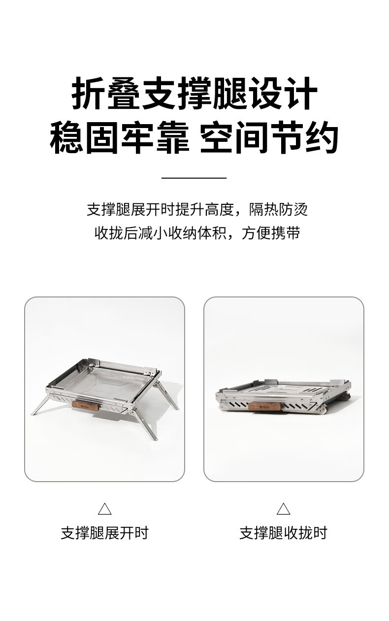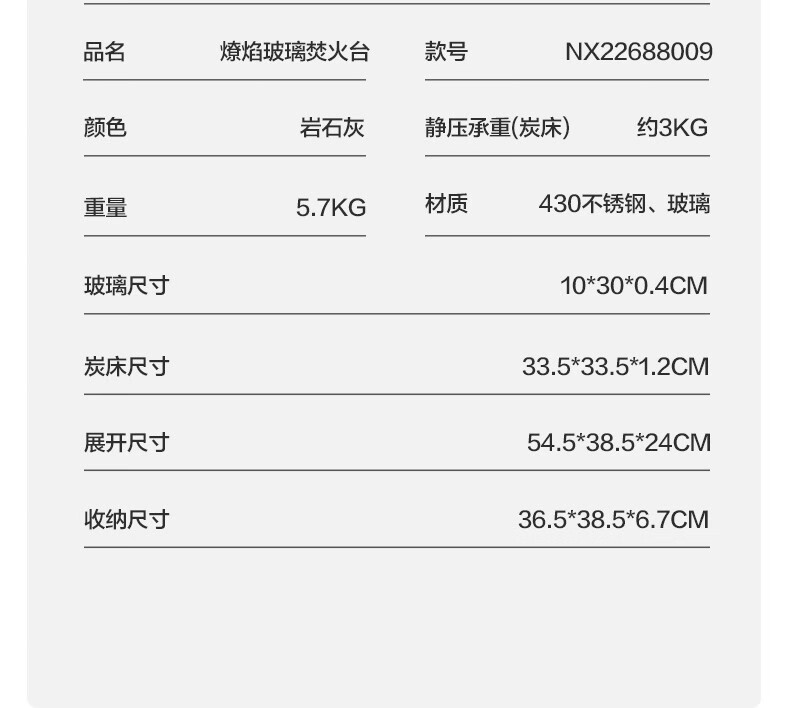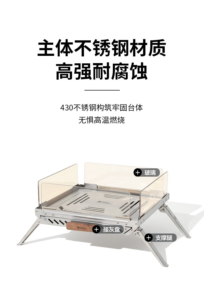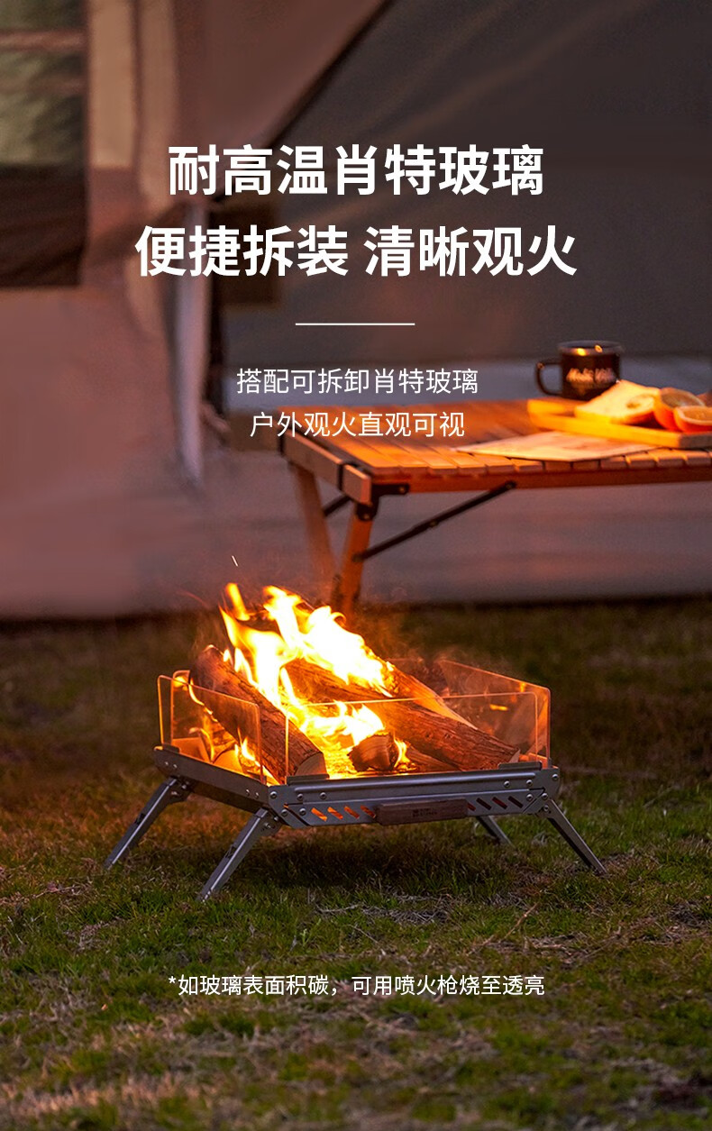 Naturehike挪客观火玻璃焚火台户外露营冬季折叠取暖烤火烧烤围炉煮茶多功能 烤架/不锈钢本色