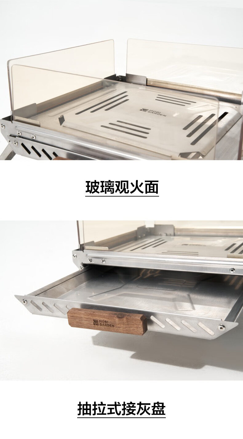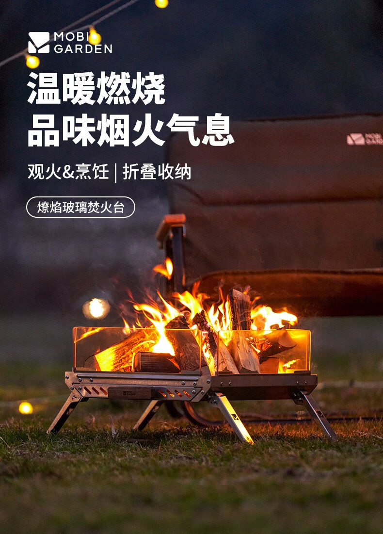牧高笛(MOBIGARDEN)取暖炉 户外露营野炊便携多功能烧柴炉箱式碳火炉燎烈 曜石黑(不含周边配件)
