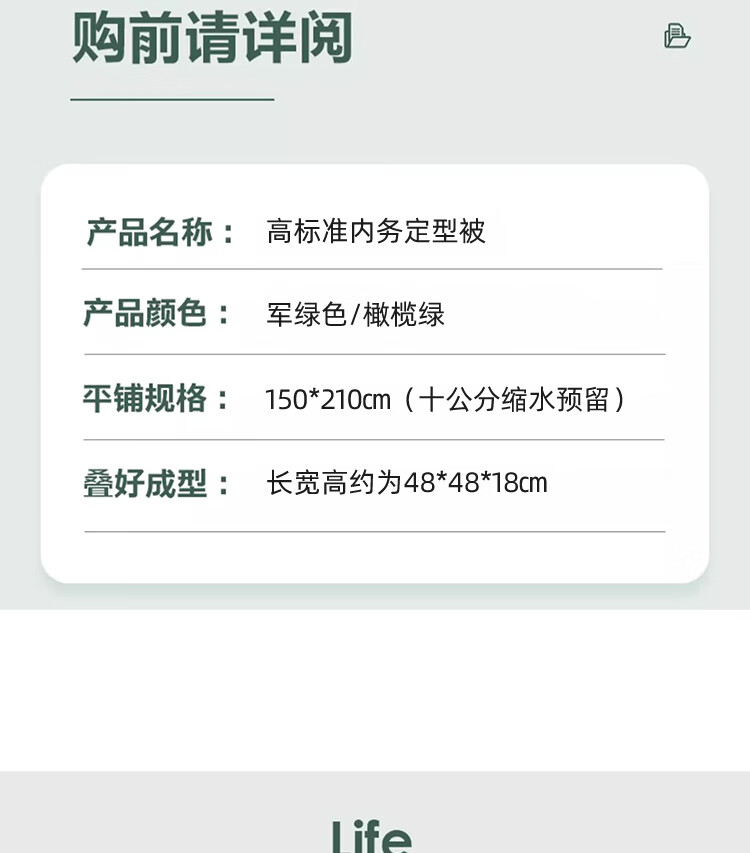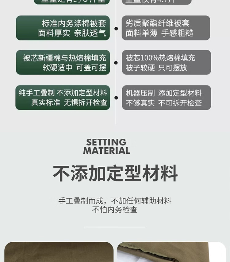 云启格模型被手工定型被军绿色无帆布内务被标准豆腐块棉被 高标准无帆布定型被(军绿色) 三折叠