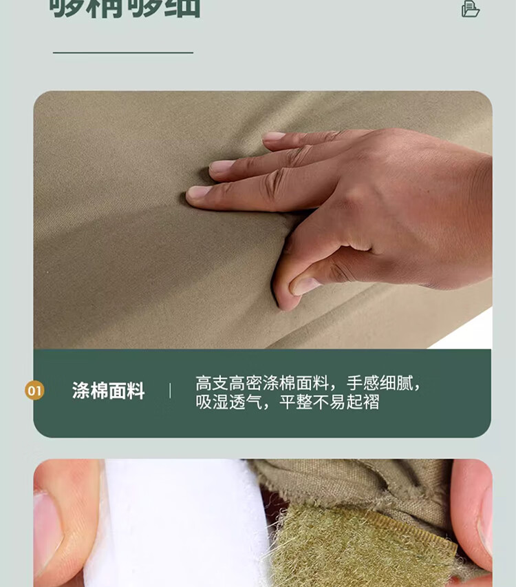 际华 3565模型被手工定型被纯色内务棉被可盖成型单人手工豆腐 军绿色(三折定型被)