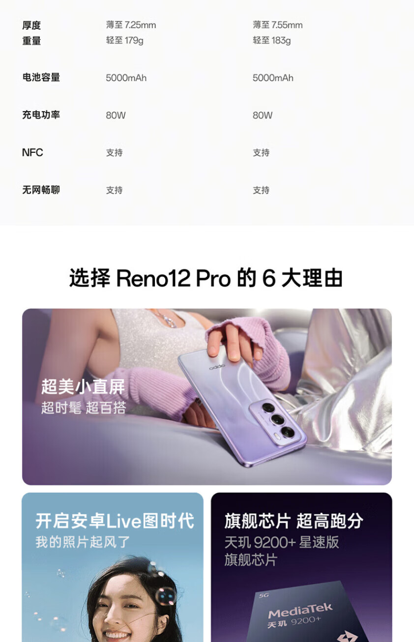 OPPOReno12pro 5G手机 天玑9200+旗舰芯 5G展机 AI智能拍照游戏手机 银幻紫 16GB+256GB 单机+第三方充电器+店保一年