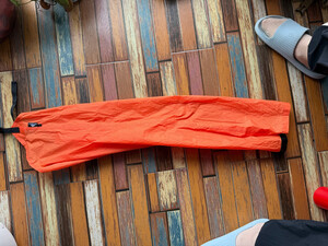 裤腿挺不错的,防水比带冲锋裤方便也轻,下雨的时候套起来挺方便的。男士的装的背包使用,不然风大雨大,容易把骷髅子弄湿,女衣盖不住裤子