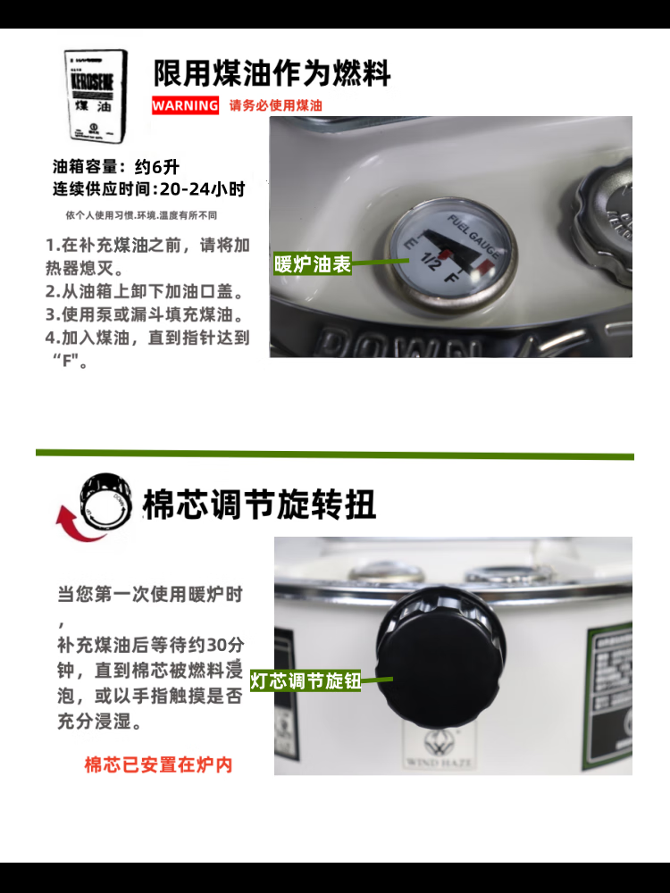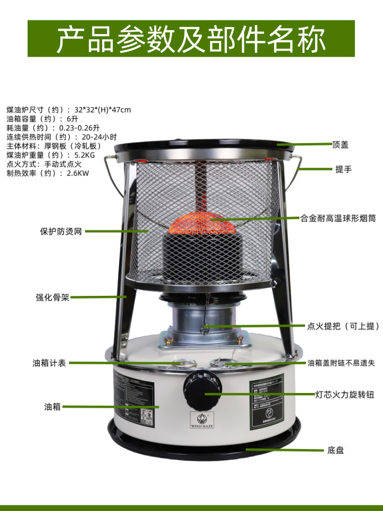 CAMPSOR 冬季户外煤油取暖炉垂钓露营白油取暖器手提煤油炉韩式取暖罩 取暖炉送抽油管