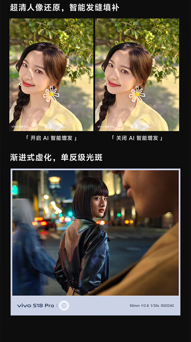 vivoS18 全网通5G骁龙7芯片智能人像AI拍照超感光游戏轻薄曲面屏手机 玄黑 16GB+512GB