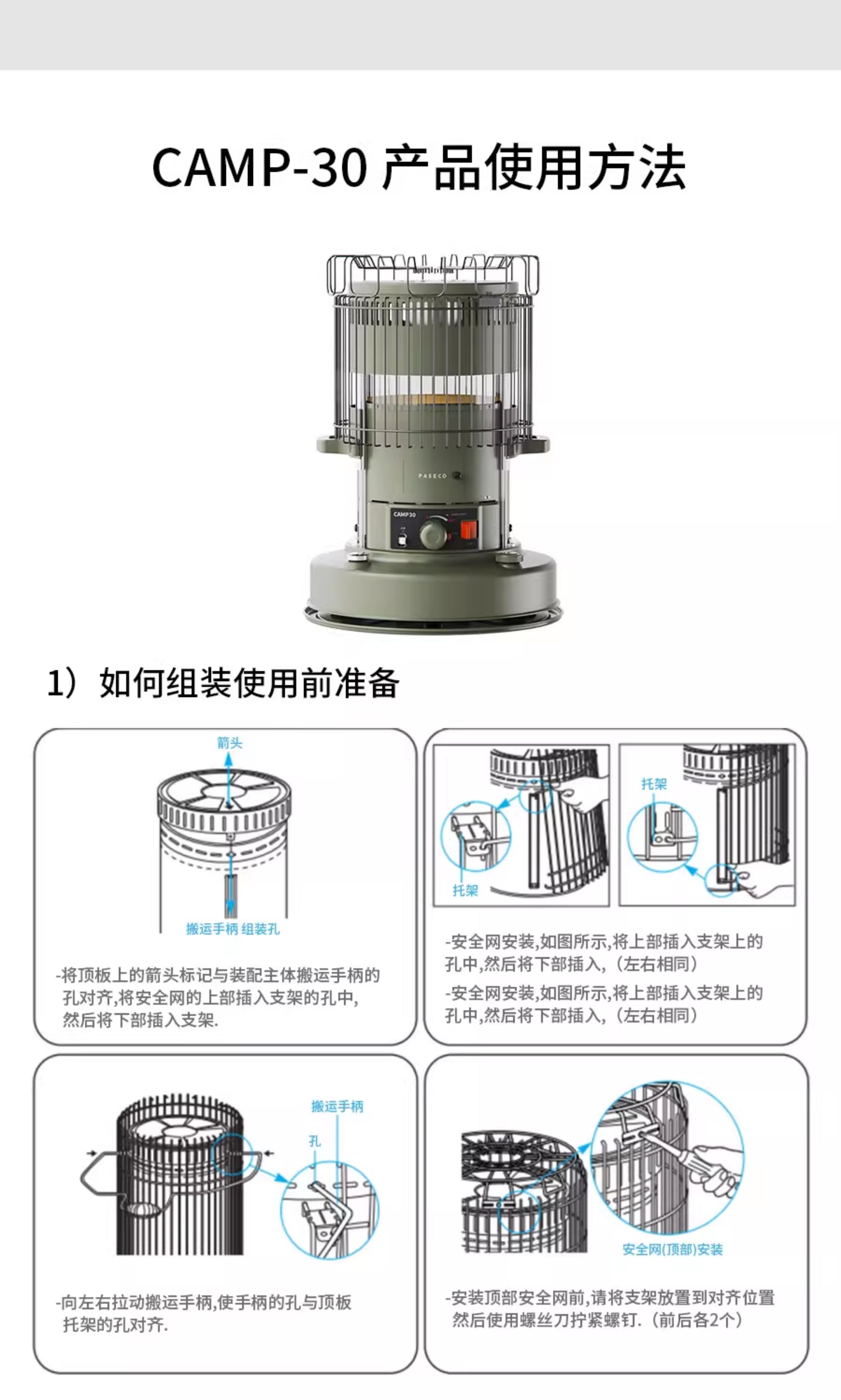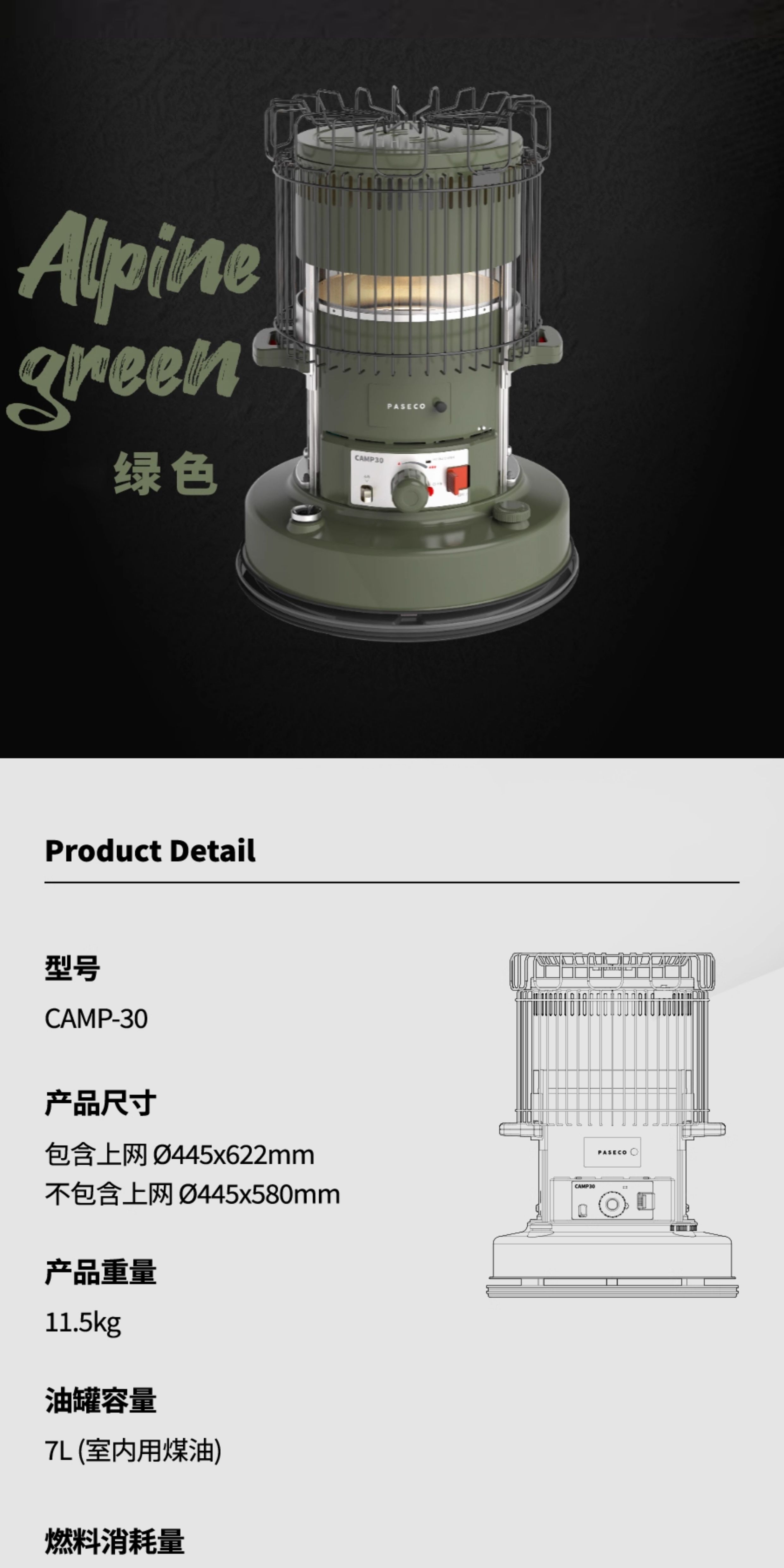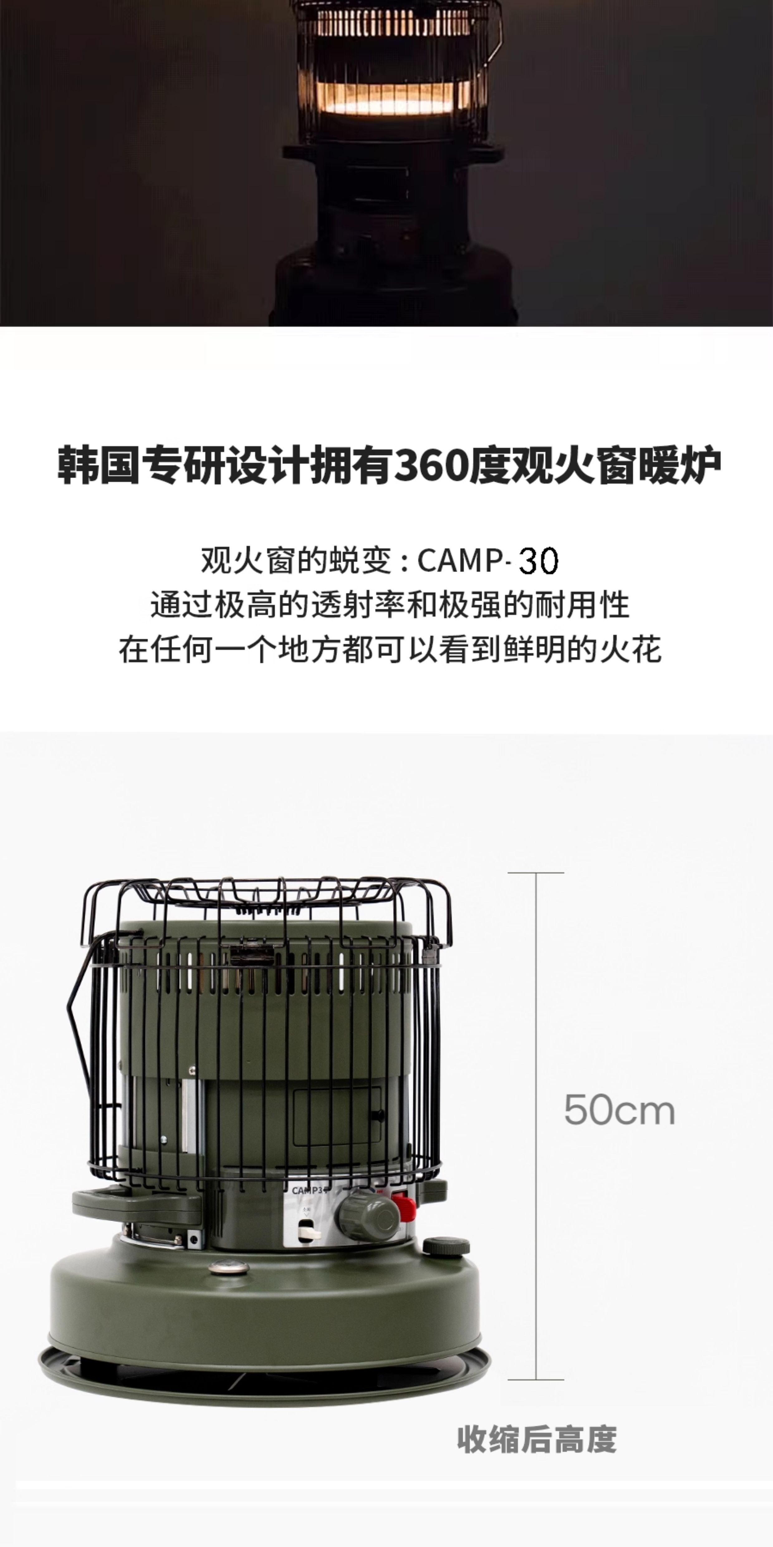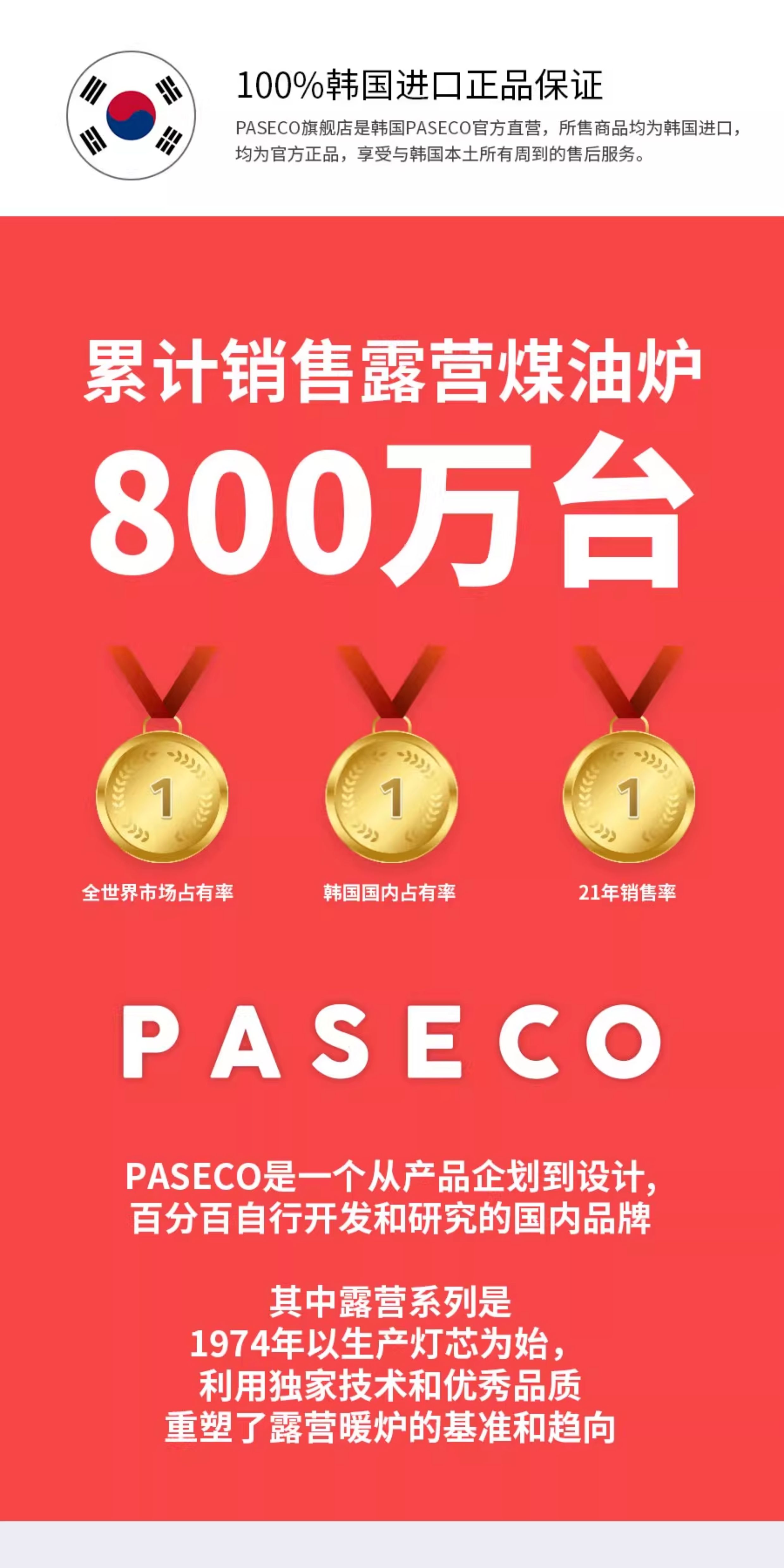 古慕妮PASECO韩国露营暖炉户外煤油燃烧取暖室内外便携式围炉 白色现货配安+加油泵+手提
