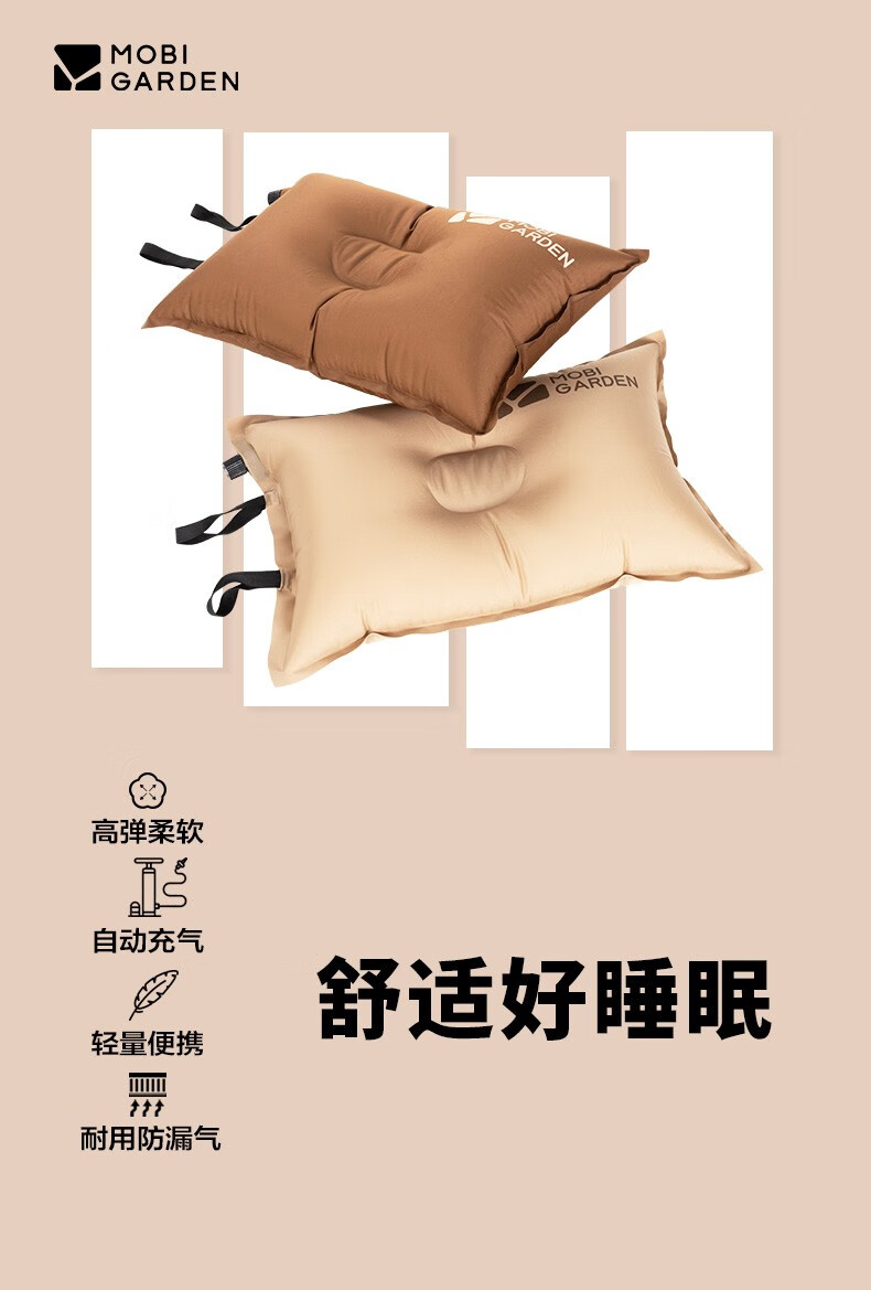 牧高笛(MOBIGARDEN)自动充气枕头 旅行枕 便携舒适午睡露营睡枕 NXL1534002 暖沙色