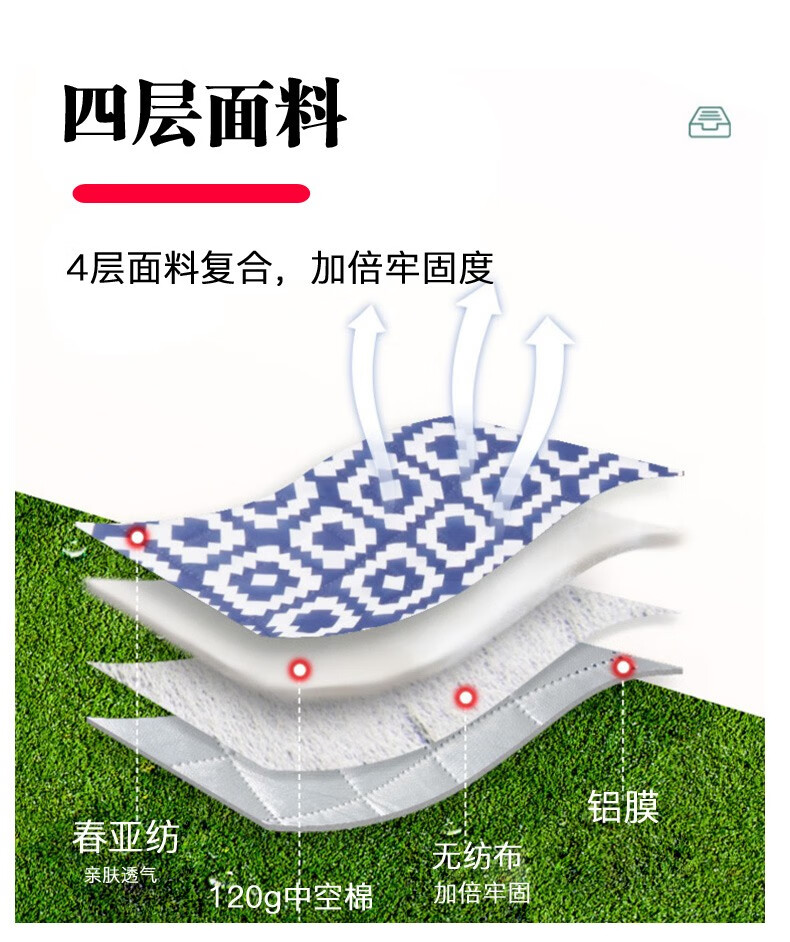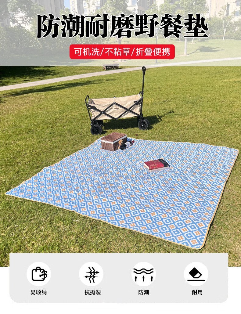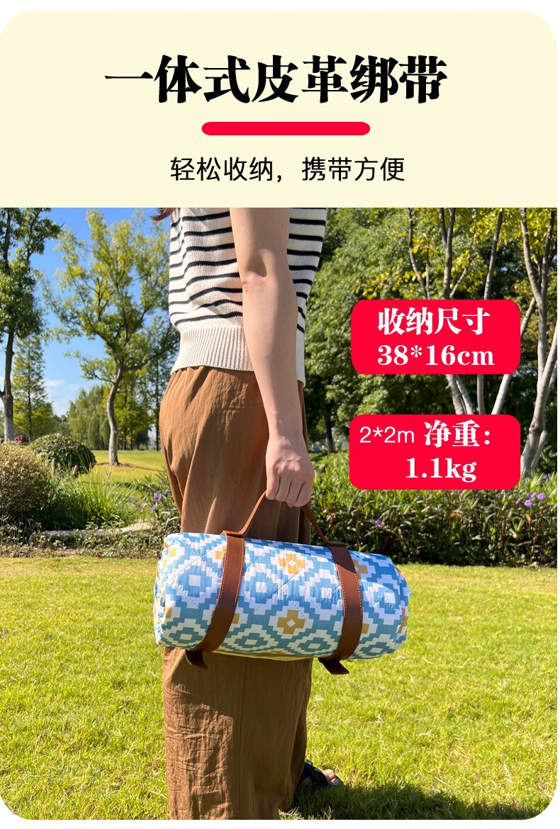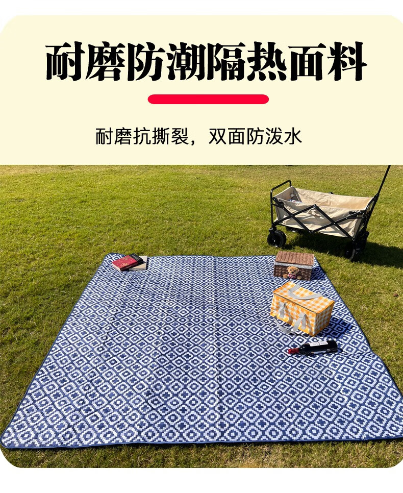 北牧歌 便携野餐垫防潮垫加厚户外露营地垫野营草坪垫子可机洗超声波 海盐芝士2*2米(4层防潮耐磨)