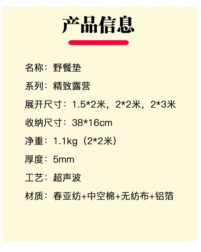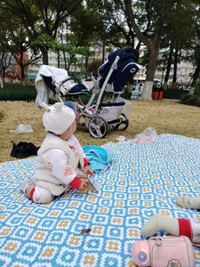 超级大,双胞胎小朋友出去露营野餐都很方便,够坐,厚实,携带方便,每天户外必不可少的一餐垫, 容纳人数:七八个人完全没问题 防水效果:水不小心打湿在上面擦一下就好, 适用场景:公园,野营,搭帐篷都很好